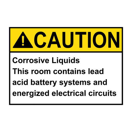 ANSI CAUTION Corrosive Liquids This room contains lead acid battery systems Sign