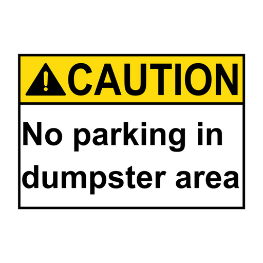 ANSI CAUTION No Parking In Dumpster Area Sign