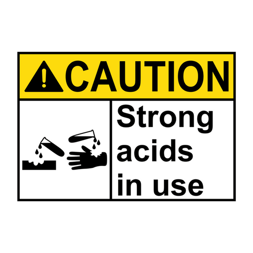 ANSI CAUTION Strong Acids In Use Sign with Symbol