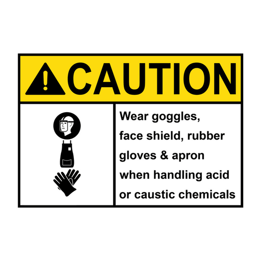 ANSI CAUTION Wear goggles, face shield, rubber gloves and apron Sign with Symbol