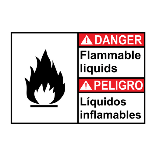 English + Spanish ANSI DANGER Flammable Liquids Sign With Symbol