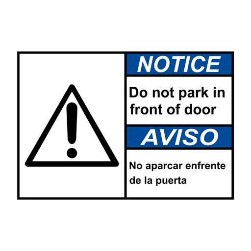 Bilingual ANSI NOTICE No Parking In Front Of Door Sign With Symbol