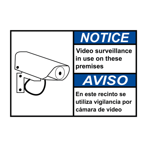 English + Spanish ANSI NOTICE Video Surveillance On Premises Sign With Symbol