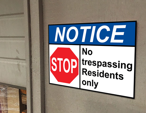 View full detailsANSI NOTICE No trespassing Residents only Sign with Symbol
