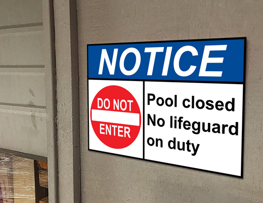 View full detailsANSI NOTICE Pool closed No lifeguard on duty Sign with Symbol