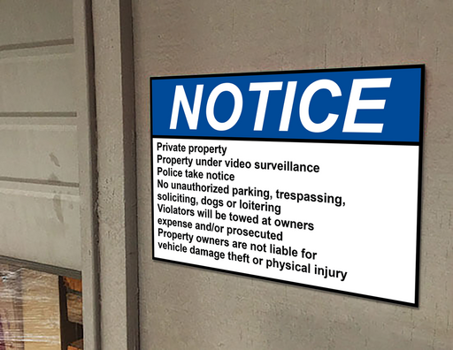 View full detailsANSI NOTICE Private property Property under video surveillance Sign
