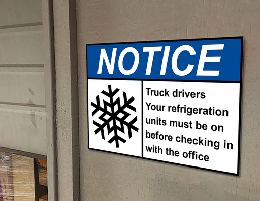 View full detailsANSI NOTICE Truck drivers Your refrigeration Sign with Symbol
