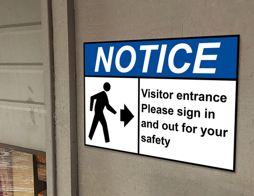 View full detailsANSI NOTICE Visitor Entrance Please In Sign with Symbol