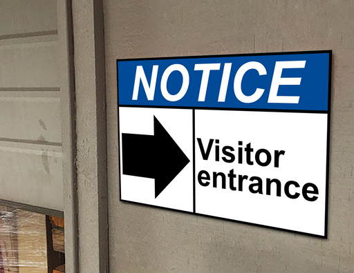 View full detailsANSI NOTICE Visitor entrance [right arrow] Sign with Symbol