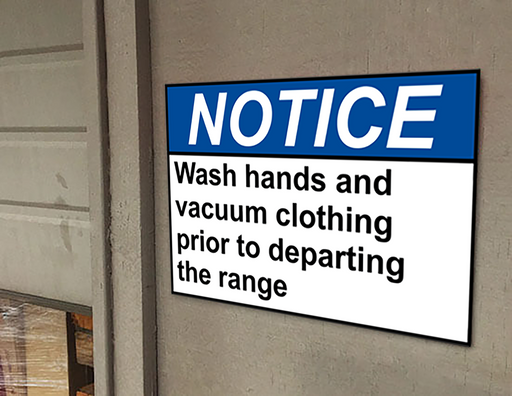 View full detailsANSI NOTICE Wash hands and vacuum clothing prior to departing Sign