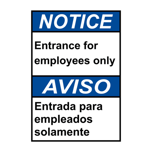 BILINGUAL ANSI NOTICE Entrance For Employees Only Sign