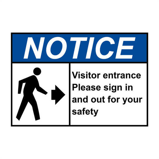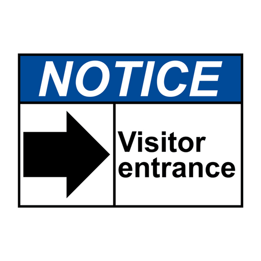 ANSI NOTICE Visitor entrance [right arrow] Sign with Symbol