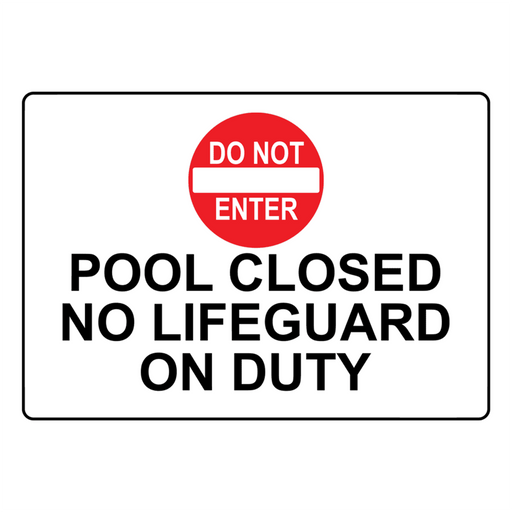 Pool Closed No Lifeguard On Duty Sign With Symbol