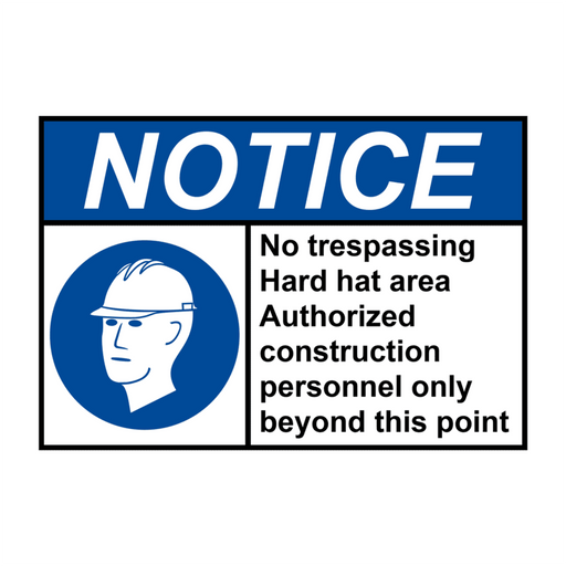 ANSI NOTICE No trespassing Hard hat area Sign with Symbol