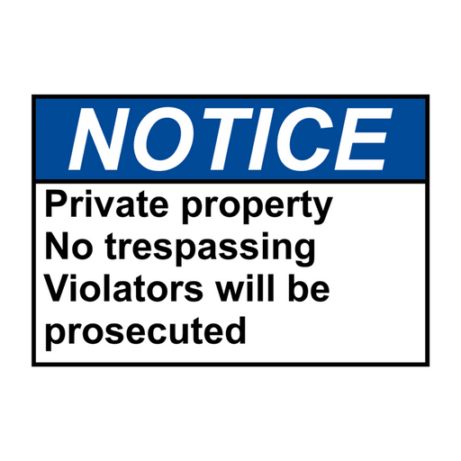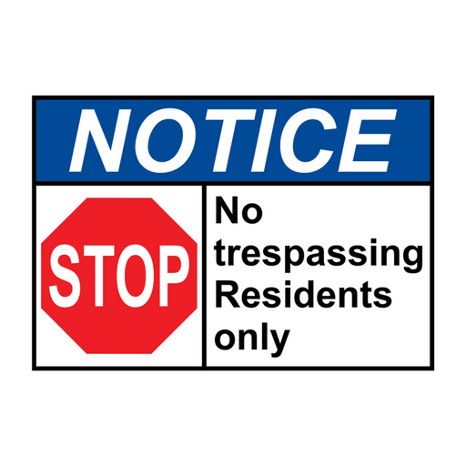 ANSI NOTICE No trespassing Residents only Sign with Symbol