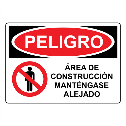 Spanish OSHA DANGER Construction Site No Trespassing Sign With Symbol