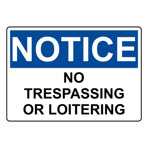 OSHA NOTICE No Trespassing Or Loitering Sign