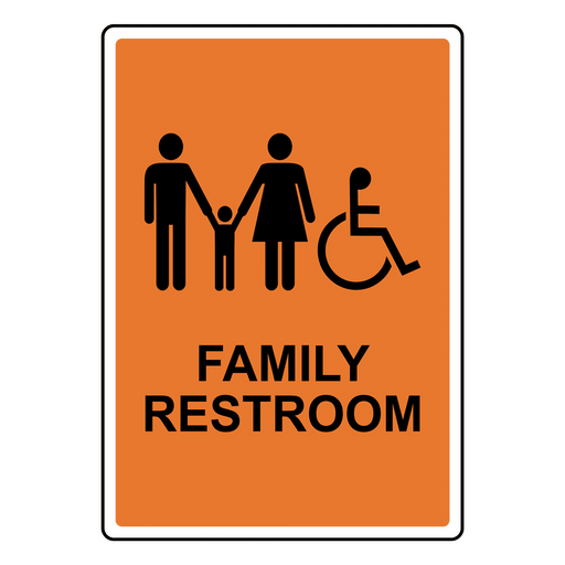 Portrait Orange Accessible FAMILY RESTROOM Sign With Symbol