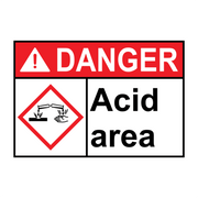 ANSI DANGER Acid area Sign with GHS Symbol