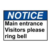 ANSI NOTICE Main entrance Visitors please ring bell Sign