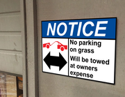 ANSI NOTICE No parking on grass Will be Sign with Symbol